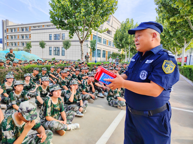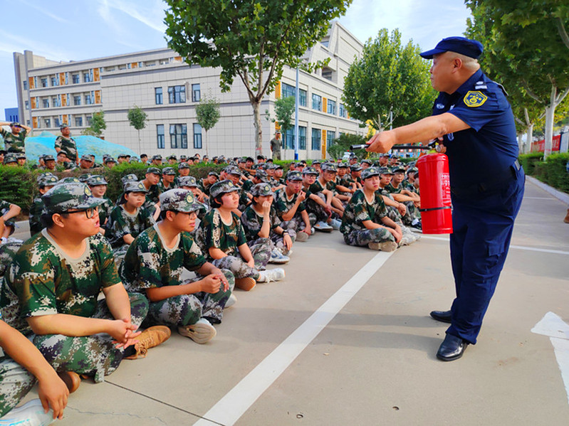 ——消防培训融入军训,强化实操技能。自9月15日起,学校将消防培训融入新生军训环节,利用训练间隙分批次开展器械实操培训。后勤安保处消防干事为各连队新生讲解干粉灭火器、过滤式自救呼吸器、消防水带等常见设备的使用方法与注意事项,通过理论结合实物展示的方式,增强新生的直观理解和操作能力。这一模式既丰富了军训内容,也提升了学生的实战应对能力。