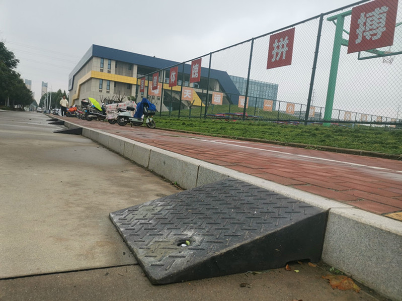“这些斜坡垫看似不起眼,但解决了我们的大麻烦!”一名经常骑电动车上课的学生表示,“之前推车上台阶总得找人帮忙,现在有了斜坡垫,一个人就能轻松搞定。”后勤人员介绍,斜坡垫选用防滑材质,承重可达300公斤以上,既能保障自行车、电动车平稳推行,也能方便师生搬运重物,同时兼顾雨雪天气的防滑需求,真正将服务做到了“最后一米”。