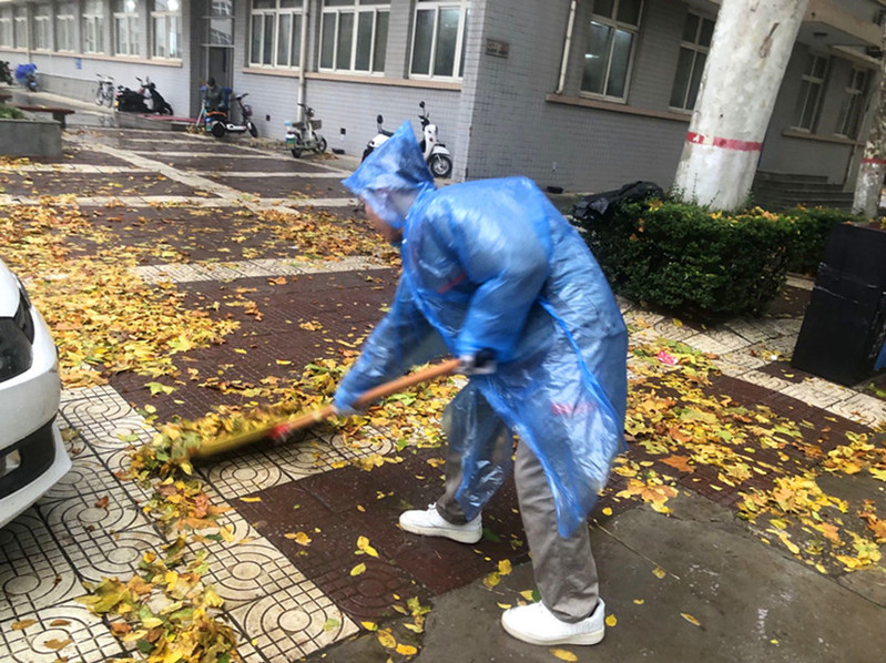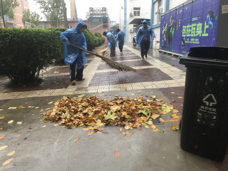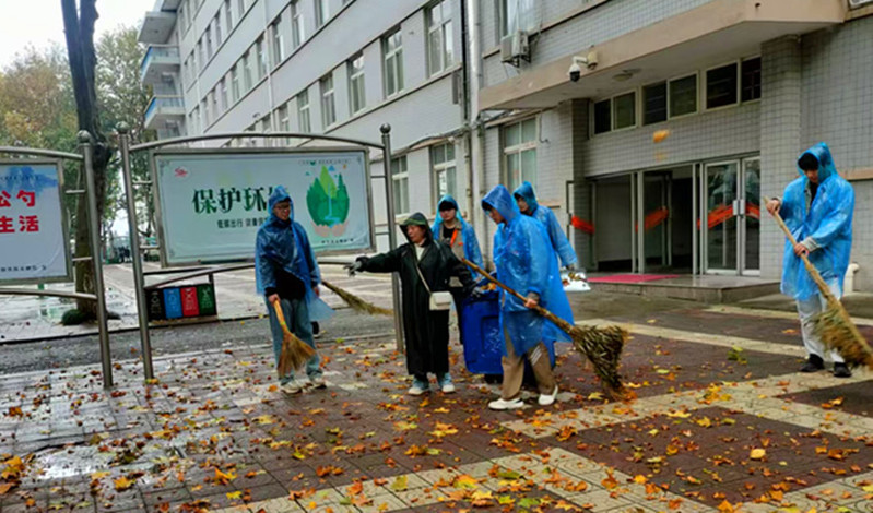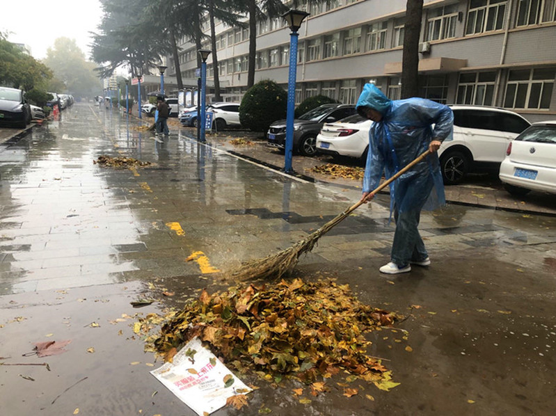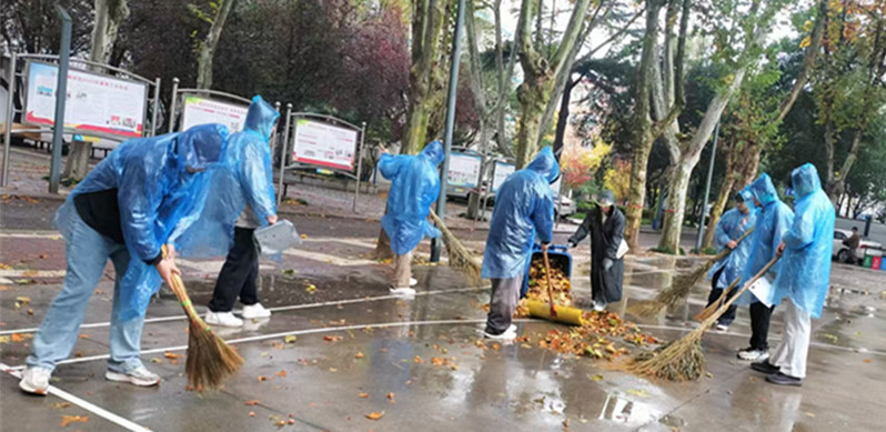 风雨中的坚守:陕铁院劳动班师生冒雨清扫美化校园