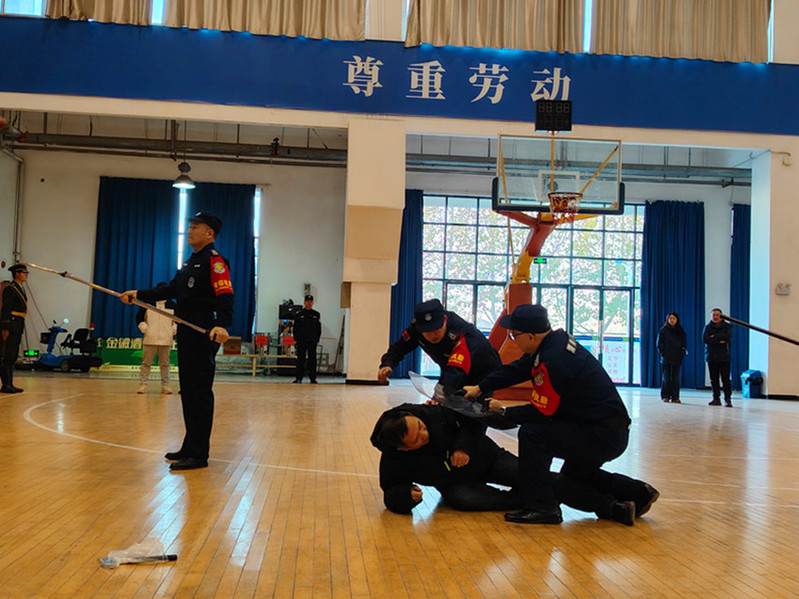 本次比武汇聚高新区14支重点单位队伍,围绕“快速响应、高效处置”核心要求,设置防暴器械操作、模拟持刀暴力事件处置等实战科目。各队依次登场,规范演示防爆盾牌、长棍、抓捕器等装备使用,并在模拟场景中展现快速响应、团队协作与应急处置能力。