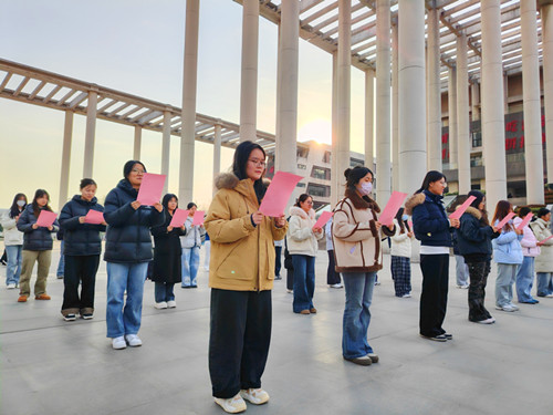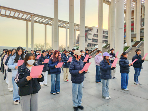 12月4日国家宪法日当天,200余名学生代表齐聚星光广场,参与“宪法诵读暨宣教活动”。在主持人带领下,学生代表集体诵读宪法核心条款,“中华人民共和国公民在法律面前一律平等”等清朗誓言回荡校园。诵读后,12块宪法宣教展板吸引学生驻足学习。展板既涵盖宪法常识、习近平法治思想核心要义,也解读了公民基本权利与义务、宪法发展历程等重点内容,通过图文并茂的形式让抽象的法律知识更易理解,助力同学们深化对宪法权威的认知。