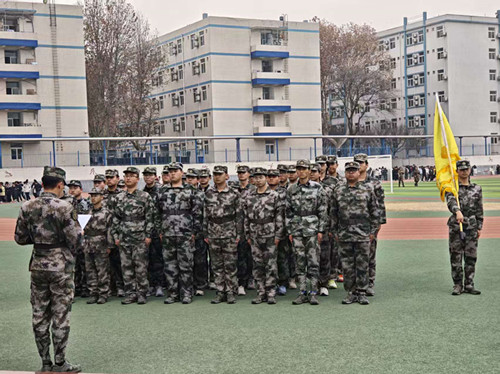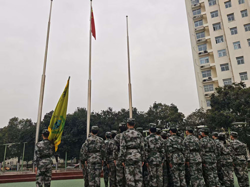 活动在庄严的升国旗仪式中拉开帷幕。全体队员肃立行礼,高唱国歌,共同缅怀那段峥嵘岁月。护校队中队长刘凯强在国旗下讲话,带领队员们回顾“一二·九”运动的光荣历史,号召大家将爱国情怀与学校“吃苦奉献、拼搏争先”的精神传统紧密结合,以实际行动践行守护校园、服务师生的责任担当。