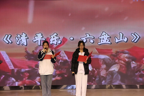 本届朗诵会在选篇上精心筹划,既涵盖了《沁园春·长沙》《七律·人民解放军占领南京》等反映革命峥嵘岁月的经典之作,也选取了《七律二首·送瘟神》《水调歌头·重上井冈山》等展现社会主义建设时期豪情壮志的佳作,较为完整地展现了毛泽东同志的宏伟抱负与革命生涯。活动特别增设“思政微解读”环节,在每首诗词朗诵前进行简要精炼的背景与精神阐释,帮助观众深化对作品历史意义和时代价值的理解。