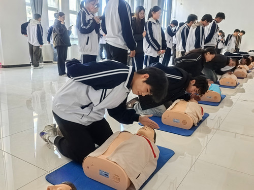 在实操演练部分,参训师生在导师的逐步指导下,利用人体教学模型完整模拟了“现场安全评估—患者意识判断—呼吸检查—紧急呼救—胸外按压与人工呼吸—AED使用”等一系列急救流程。培训导师全程跟踪,提供一对一规范化指导,确保各项操作准确、到位。